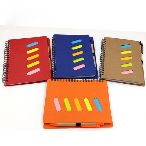 Promozionale Eco Friendly carta Kraft Notebook con penna a spirale A6 Notebook personalizzati con nota adesiva