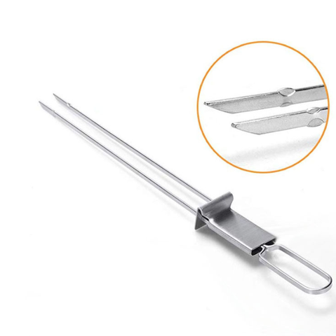 Herramientas para asar barbacoa al aire libre, pinchos de acero inoxidable, palos para asar