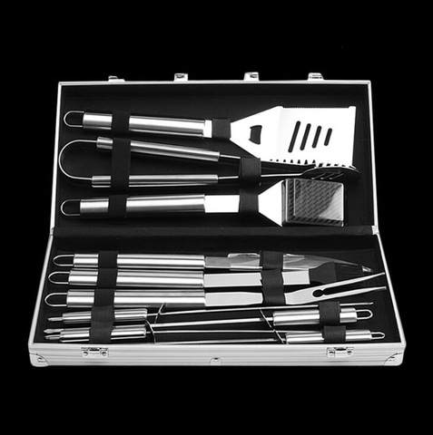 Juego de barbacoa de nuevo estilo con metal resistente al calor y cromado incluye herramientas esenciales 6-8 caja de aluminio